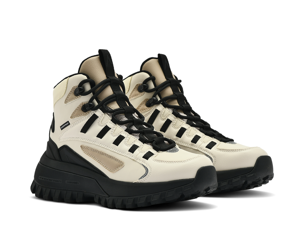 Apaze Hightop er en videreudvikling af vores klassiske Apaze-model – nu som en hightop og forbedret med vores vandtætte Hydrix Layer-membran. Denne sneaker forener retro æstetik med moderne minimalisme. De grafiske linjer og det skulpturelle design skaber en lag-på-lag-overdel, mens den korte snude giver en perfekt balance mellem stil og funktion. Overdelen er monteret på vores Triton S-19 sål, der sikrer suverænt vejgreb – perfekt til vinterbrug.