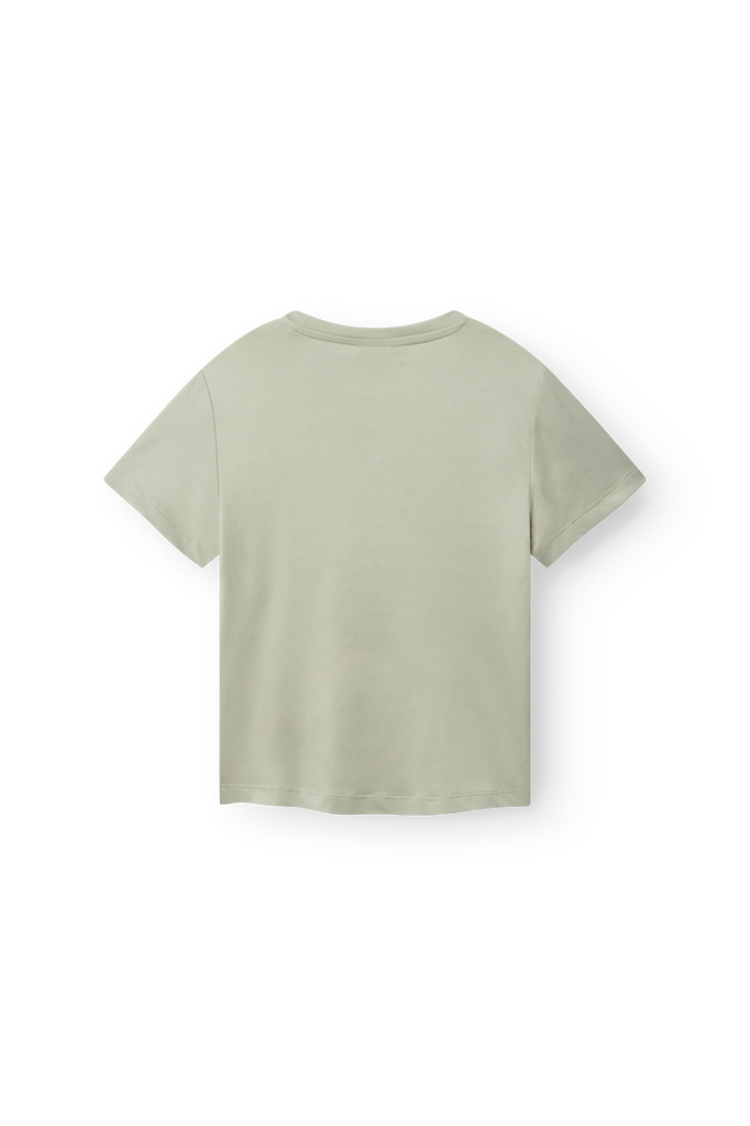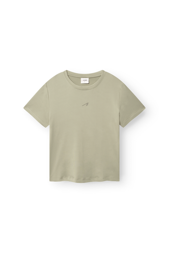 Vores Baby Tee er fremstillet i en teknisk blanding af 88% genanvendt polyester og 12% spandex, som giver en let, åndbar og fleksibel fornemmelse. Stoffet bevarer både form og blødhed over tid, hvilket gør den ideel til både bevægelse og hverdagsbrug.