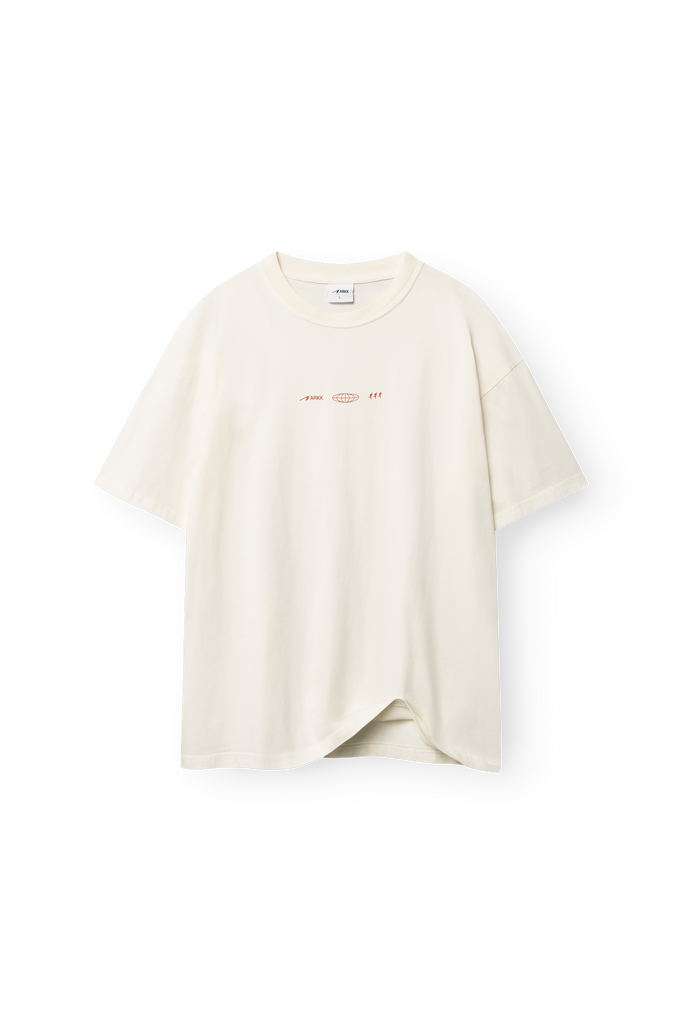 ARKK Boxy Tee – En vasket, afslappet t-shirt i boxy pasform fremstillet af 100% bomuld. Designet med grafisk print på både bryst og ryg. Et minimalistisk og alsidigt valg til hverdagsbrug.